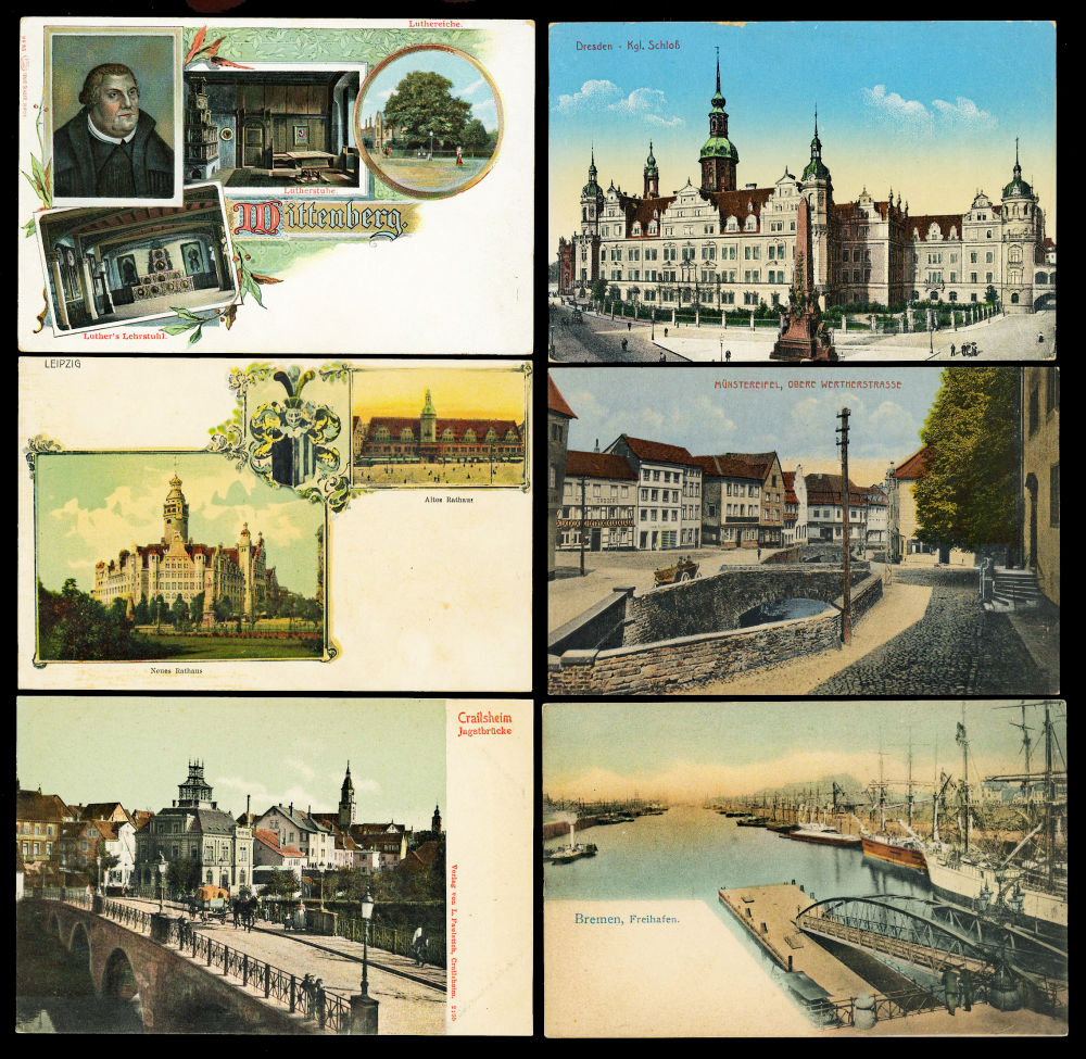 462 image19 GERMAN POSTCARDS 1906-1914, street and building views mostly from smaller towns plus a few from Koln, Dresden, Hamburg, Leipzig, and Bremen, retails over $175 US ($250 CDN), F-VF est (Image)