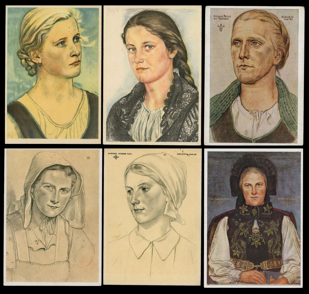 466 image11 GERMAN 3rd REICH ARTIST CARDS 1935-1939, all are Wilhelm Willrich signed cards showing9 different German women, 2 are duplicates but on of these is from a different 1940 publisher, retails over $275 US ($400 CDN), F-VF est (Image)