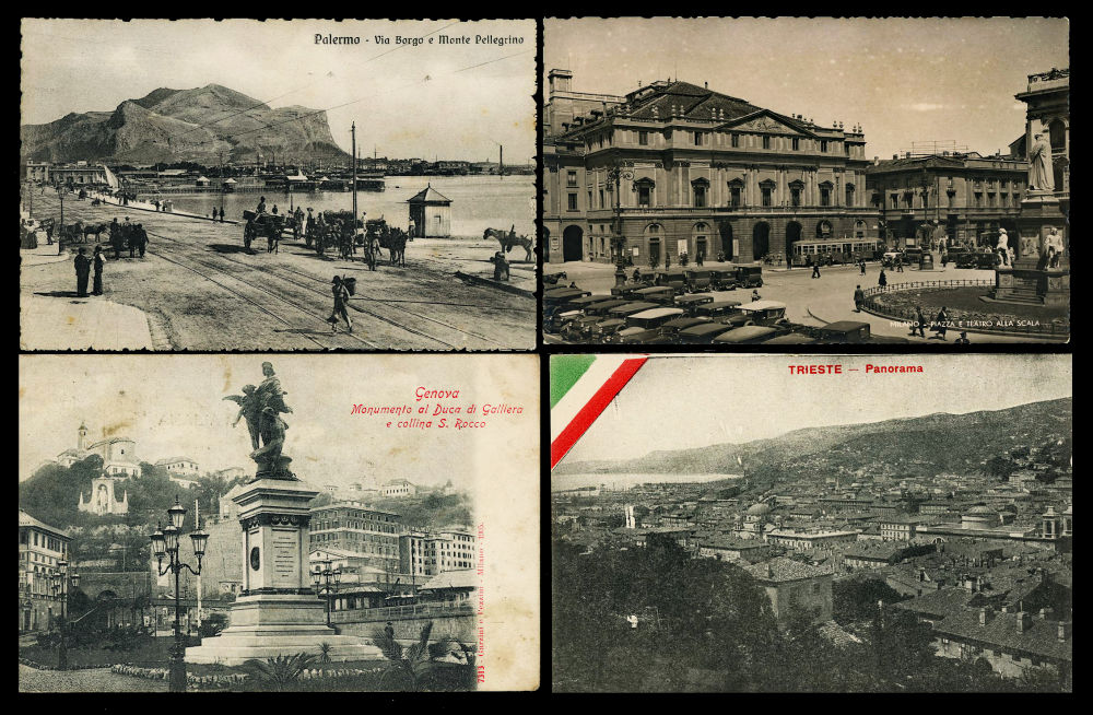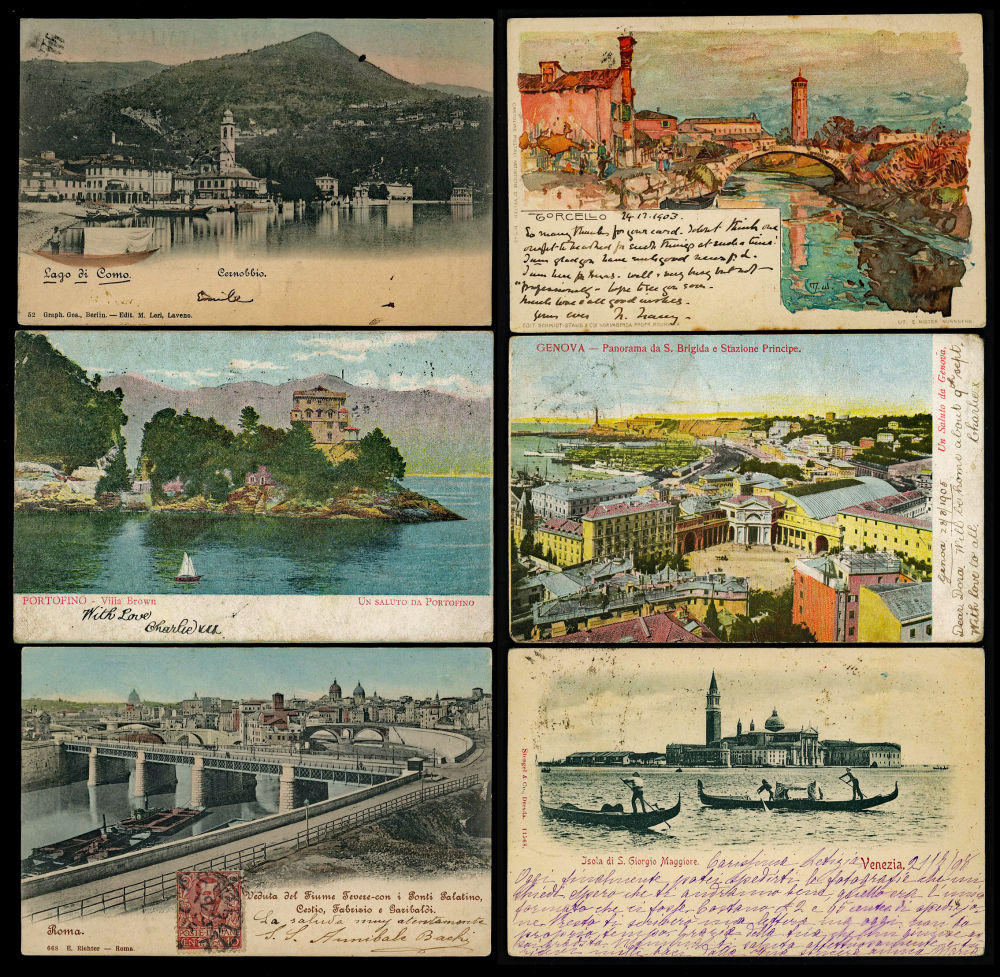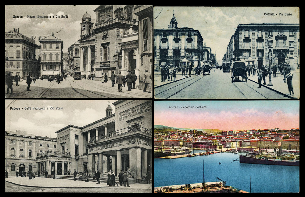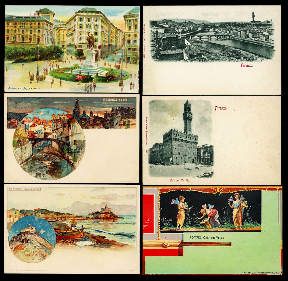 472 image26 ITALIAN POSTCARDS 1899-1905, early street and building views with undivided backs, 13 are postally used including rates to England, USA, and one Canada card with a Napoli Bickerdyke flag cancel, retails over $500 US ($700 CDN), F-VF est (Image) (image 472b) (All Images)