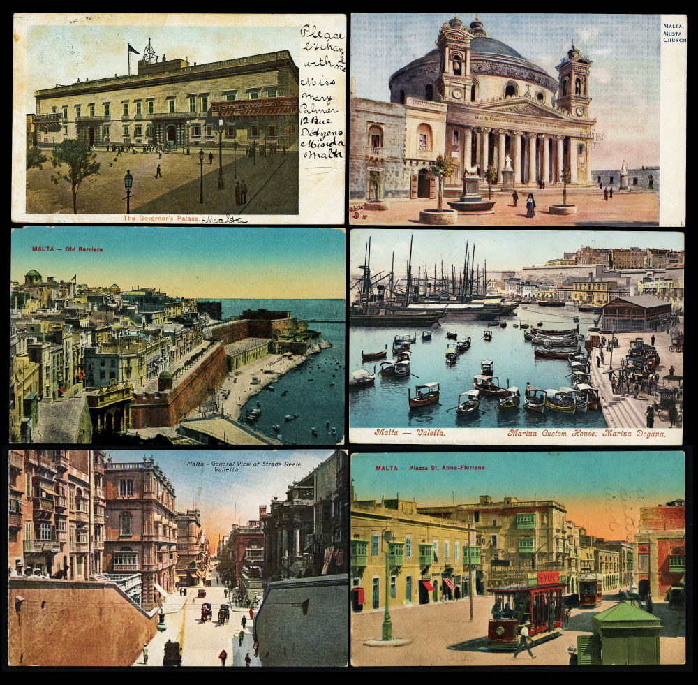 475 image54 MALTA POSTCARDS 1900-1913, street, harbor, and building views, includes 5 scarce early divided back cards, 6 are signed artist cards noting 2 Tuck "OILETTES", 14 are postally used with better rates to Canada, England, and a scarce rate to the Canary Islands, retails over $450 US ($650 CDN), F-VF est (Image) (image 475b) (All Images)