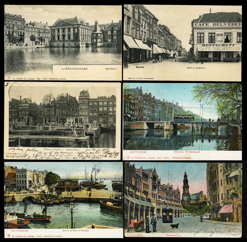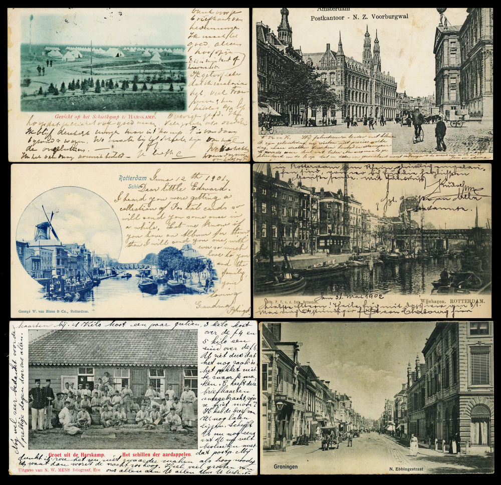 476 image36 NETHERLANDS POSTCARDS 1900-1905, street, harbor, and building views on early undivided back cards, 20 are postally used, lots of smaller towns plus nice groups of Amsterdam and Rotterdam, scarce cards retailing over $650 US ($900 CDN), F-VF est (Image) (image 476b) (All Images)