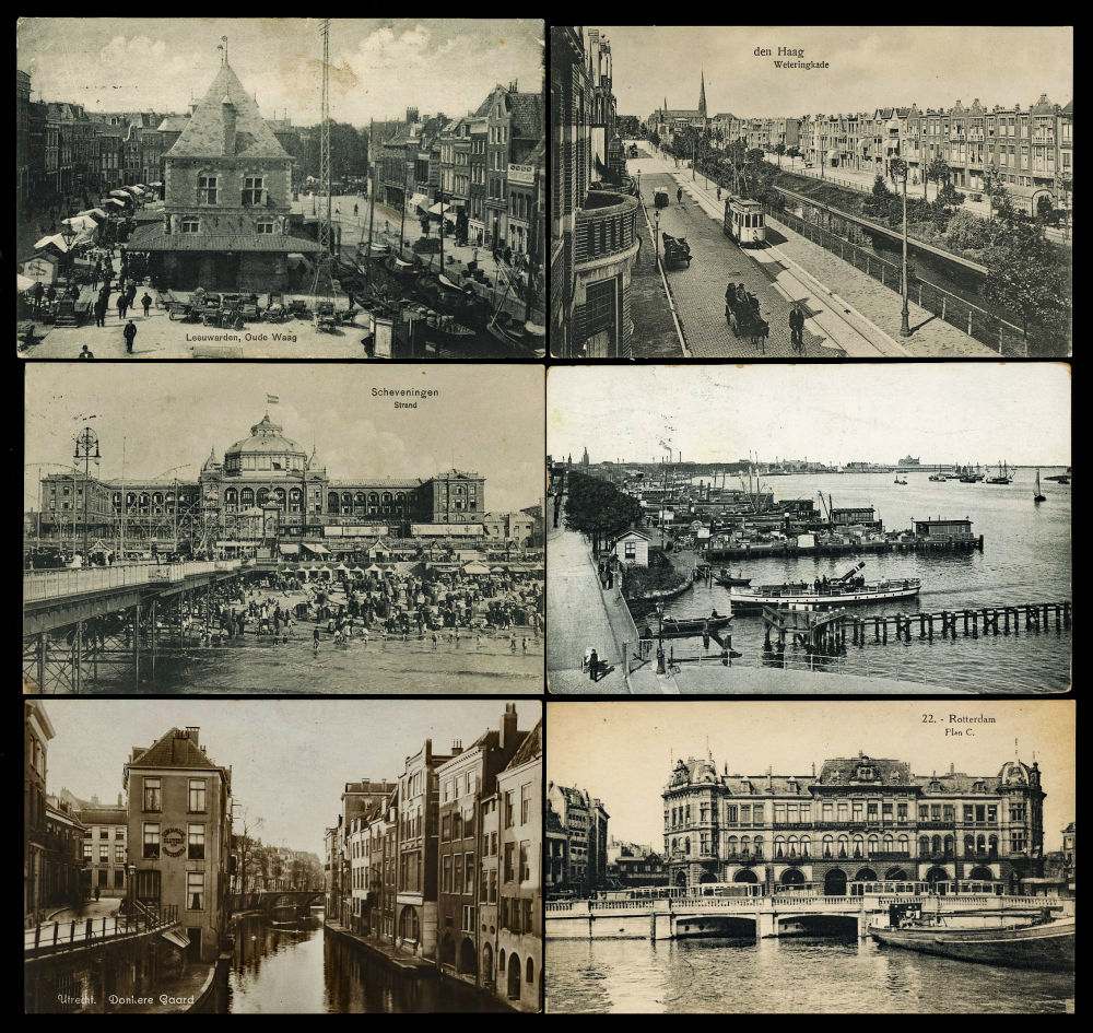 477 image41 NETHERLANDS POSTCARDS 1907-1914, street, harbor, and building views, lots of smaller towns including views of the 1910 flood at Friesland, 17 are Rotterdam cards, retails over $460 US ($650 CDN), F-VF est (Image)