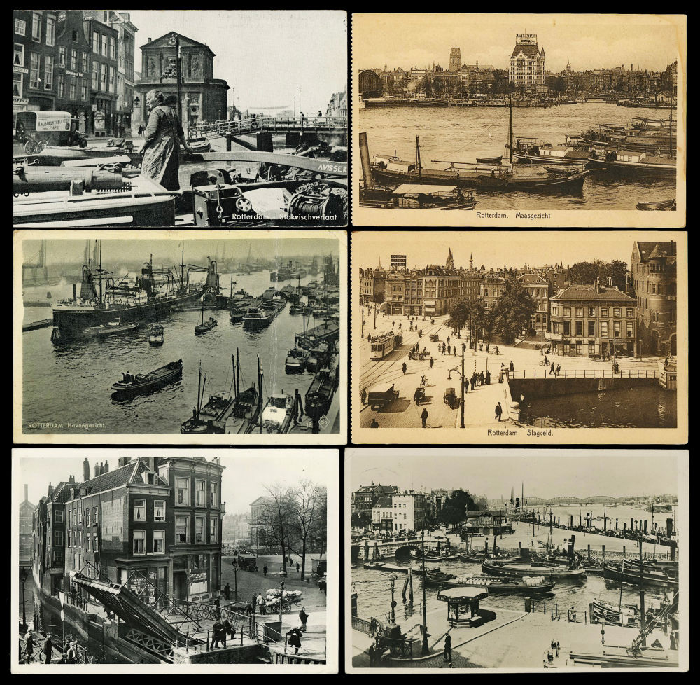478 image31 NETHERLAND POSTCARDS 1914-1930's, street, harbor, and building views, 20 are Rotterdam views, 3 are R.T.R. artist signed cards and nice smaller towns of Oogstt, Grebbe, Wormerveer, Middelburg ++, retails over $175 US ($250 CDN), F-VF est (Image)
