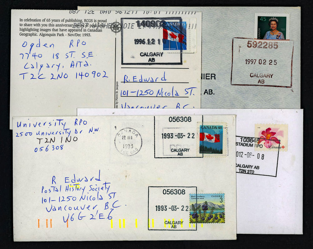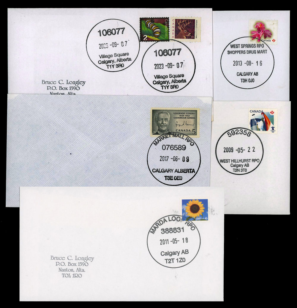 128 image452 CALGARY POCON TOWN CANCELS 1990-2023, over 300 different boxed and cds cancel types, 72 are legal size covers, retails over $700 US ($1000 CDN), mostly VF est (Image) (image 128a) (image 128b) (All Images)