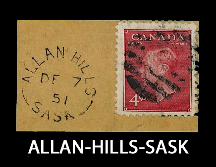 131 image1951 ALLAN-HILLS-SASK (1914-1951 RF-E), split ring dated DEC-7-1951 on piece, retails $50 US ($75 CDN), F-VF est ($35+ US) (Image)