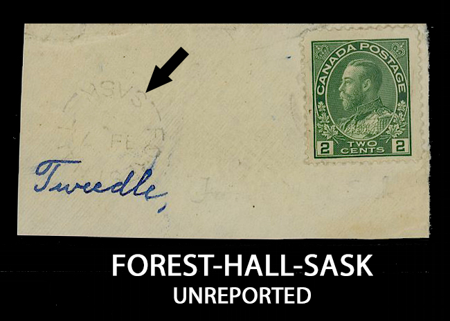 135 image1920 FOREST-HALL-SASK (1908-1928 UNREPORTED), very light split ring dated FEB-7-1920 on piece, retails $75 US ($100 CDN), F-VF est ($50+ US) (Image)