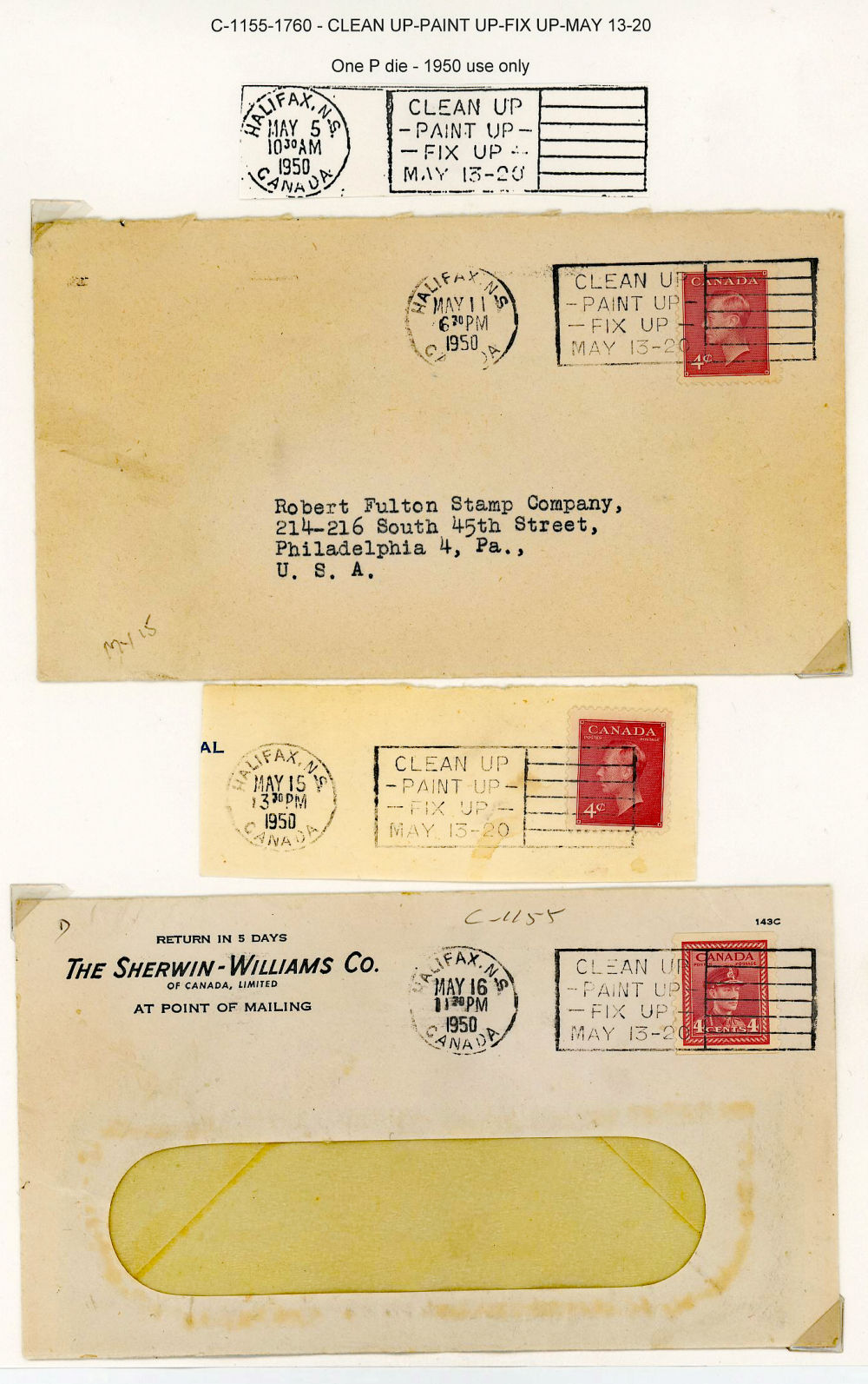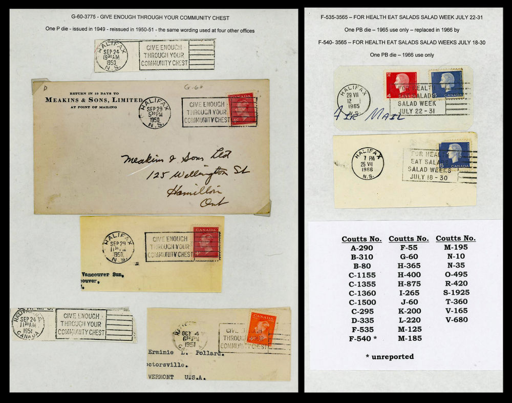 173 image59 HALIFAX-NS SLOGAN CANCELS 1949-1974, a mounted ex-Rosenblatt collection of 31 different slogans on 10 covers and 49 cut squares, Coutts #A-290 to #V-680 including an unreported #F-540, near complete for the period, retails over $210 US ($300 CDN), F-VF est (Image) (image 173b) (image 173c) (All Images)