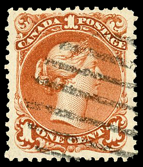 Reddish Purple on thick soft paper, thinning as often but excellent appearance with bright colour and '21' Montreal numeral cancel, cat. $9,000.00, VF (Image1)
