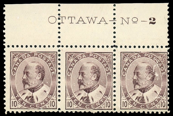 a well centered unused plate 1 top margin strip of four, very scarce, VF NG (Image1)