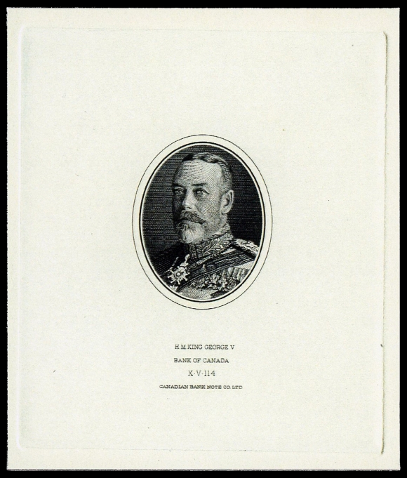 1299   imageVIGNETTE DIE PROOF - Oval portrait of King George V with four line Canadian Bank Note Company imprint below, a perfect companion to the 1935 definitive issue, VF (Image1)
