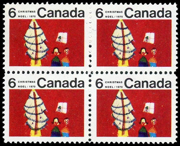 Centre blocks of four from the 1970 Christmas Issue, VF NH (Image1)