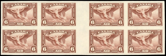 Brown airmail of 1935, an impressive mint imperforate gutter margin block of eight, post office fresh and with large margins all around, LH mostly in the gutter between top centre pair, otherwise NH, attractive and very scarce, a lovely showpiece,