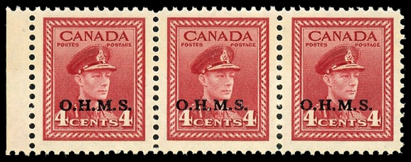 Officials, the narrow spacing variety in well centered mint strips of three, VF NH (Image1)