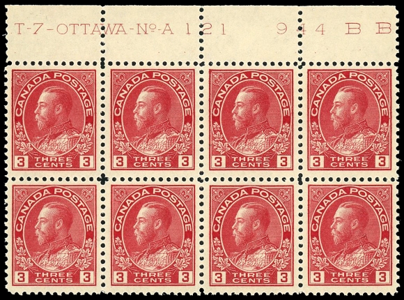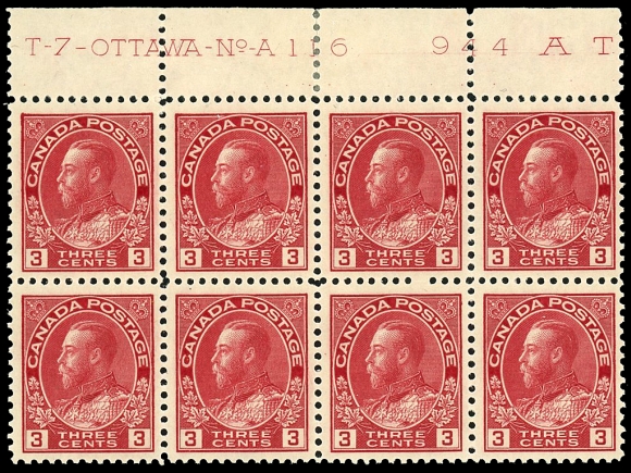 Carmine plate A116 block of eight, reinforced at top leaving six stamps NH, VF (Image1)