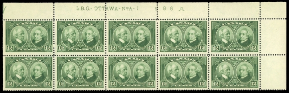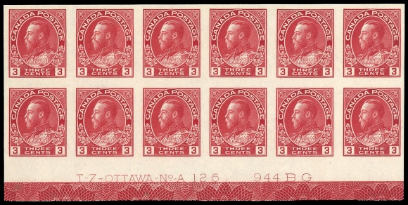 Carmine mint plate A126 block of twelve showing full type D lathework at foot, ten stamps are NH, a showpiece, VF LH (Image1)