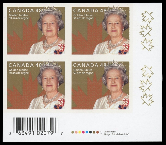 Elizabeth II imperforate lower right plate block of four, a very scarce modern major error, VF NH (Image1)