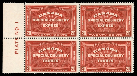 25¢ Centennial, a scarce Winnipeg Tagged matched set of corner blocks, VF NH