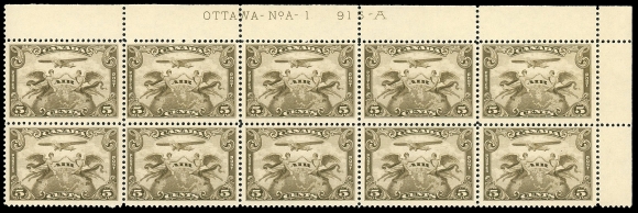 plate A-1 UR strip of ten mint, F-VF NH (Image1)