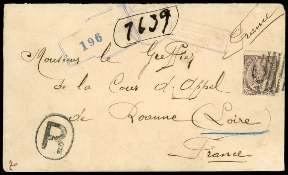 REGISTERED 1912 COVER TO FRANCE - AQ scarce single usage of the 10¢ Edward (Scott #93) tied by grid cancel to cover from Montreal to Rounne, March 8 dispatch and March 20 receiver postmarks on reverse, pays 5¢ postage and 5¢