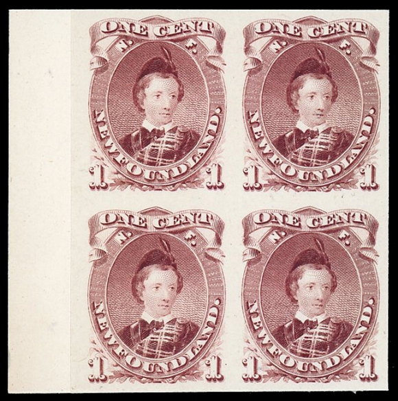 of Wales plate proof block of four in the issued colour, printed on card mounted india paper, sheer margin at left, fresh and choice, VF+ (Image1)