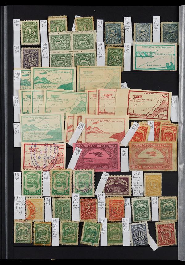 Colombia, Powerful Classics Collection, 1859-1937, of approximately 1,000 stamps, mixed mint and used with many better including 1920 airmails including mint Scott Nos. C11, C11A (1 o.g., 1 no gum), C11B (3 o.g.), C11C (3 o.g.), C11D (3 o.g.), and Scott No. C11H with favor cancel and Temprano backstamp, some duplication, beautifully organized in a stockbook with each stamp having a small tab adjacent identifying the stamp by Temprano catalog number, few faults as always on lots of this age and number of stamps, generally Fine to Very Fine, fully imaged online. Shipping charges apply - weight 4.4 lbs. (Video for this lot) (Image)