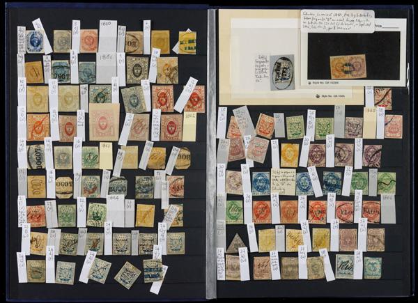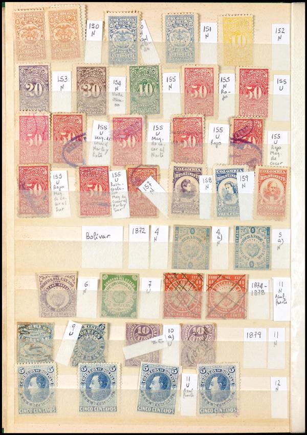 Colombia, Outstanding Collection, 1859-1895, of approximately 800 stamps, mixed mint and used with many better including Nos. 2 & 3 on small piece, minor duplication, beautifully organized in a stockbook with each stamp having a small tab adjacent identifying the stamp identifying the stamp, few faults as always on lots of this age and number of stamps by Temprano catalog number, generally Fine to Very Fine, fully imaged online. Shipping charges apply - weight 1.6 lbs. (Video for this lot) (Image)