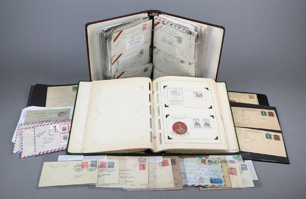 Colombia, Multiple Postal History Collections, including a handful of Airmail covers including SCADTA & an Air France crash cover, approximately 120 to the Colombian Legations in Peru (90), Chile (15), Chicago (15), plus another 100 or so commercial covers (this group 1910's-50's), over 80 mostly first day and flight covers from the mid 1950's, plus approximately 30 pieces of mint and used postal stationary & postal cards, and 5 miscellaneous items, generally Fine to Very Fine, 2 items with 20120 Temprano certificates, the lot is fully imaged online. Shipping charges apply - weight 8 lbs. (PDF for this Lot) (Video5 for this lot) (Video6 for this lot) (Image)