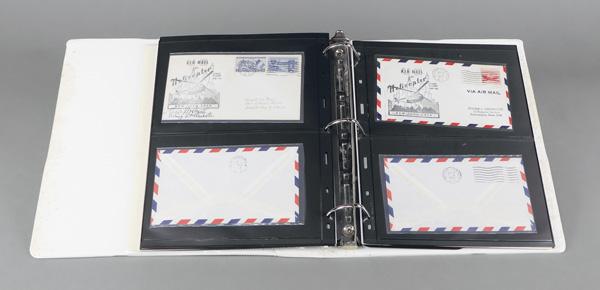 Helicopter Mail First Flights, 1947-52, 42 First Flight Covers on black Vario pages hightlighting early helicopter use in carrying the mail; experimental routes with light duplication and foreign destinations of Germany and Scotland; a solid start, Fine to Very Fine. Shipping charges apply - weight 3.6 lbs. (Video for this lot) (Image)