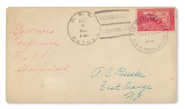 Group of Six U.S. Airship Flight Covers: USS Los Angeles, USS Shenandoah, Group includes: two 1925 U.S.S. Los Angeles from Bermuda to Lakehurst covers, 1925 U.S.S. Los Angeles from Lakehurst to Bermuda cover, 1925 U.S.S. Los Angeles Lakehurst to Puerto Rico cover, 1925 U.S.S. Los Angeles first flight marked cover from Lakehurst to Bermuda, U.S.S. Shenandoah cover marked "Governors' Conference" sent to East Orange, New Jersey and appropriately cancelled; Some very fresh examples and generally very fine; Fully imaged online, Fine to Very Fine. (PDF for this Lot) (Image)