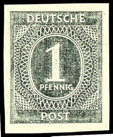 1 Pf denomination, unperforated, flawless, mint never hinged, with lightened print, unsigned, catalog value 500.- (911U) 1 Pf Ziffer ungezähnt, einwandfrei, postfrisch, mit aufgehelltem Druck, nicht signiert, Mi 500.- (Image)