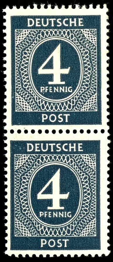 4 Pf Ziffer, vertical pair, flawless, mint never hinged, upper stamp on paper strip, not signed, catalog value 500.- (914PA) 4 Pf Ziffer senkrechtes Paar, tadellos, postfrisch, obere Marke geklebte Papierbahn, nicht signiert, Mi 500.- (Image)