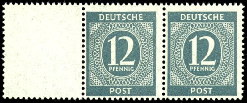 12 Pf denomination, flawless, mint never hinged, left marginal pair with clear margin on the left, unsigned. (920L) 12 Pf Ziffer,vtadellos, postfrisch, linkes Randpaar mit Leerfeld links, nicht signiert (Image)