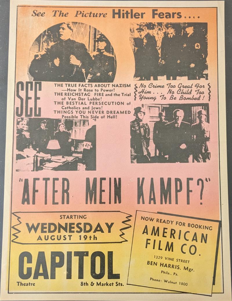 GERMANY Collection in Lindner binder, 1930s German film ephemera, incl small adverts from theaters, promo cards of movie stars or films, often w/ name of theater stamped on back; newspaper articles (Illustrierte Presse), Leni Riefenstahl autographed period PPC of her, and modern signed photograph; several items on her film "Olympia"; several issues of "Illustrierter Film-Kurier"; Very interesting material, gen F-VF+ (Image)