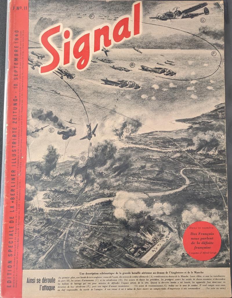 GERMANY Nazi Propaganda magazine "Signal," not sold in Germany but abroad, especially in occupied or friendly countries; a photo-journal in the style of America's "Life" magazine; collection of (36) magazines, each sleeved, housed in archival box, most are the German/Italian version (bilingual, cost 2 lire) but also French (3), Dutch (2), Danish (2), German (4) only; some margin wear, one w/o front cover, F-VF (Image)