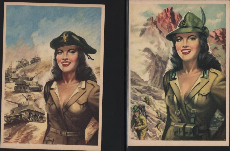 ITALY World War II Propaganda collection, (101) items, mostly postcards but also some ephemera; topics incl Italian-German friendship, Victory, "Two Peoples, One War," anti-Bolshevik, anti-England, battle scenes and war crimes, general patriotism, also a few anti-war or non-political; beautiful and quite dramatic period artwork, some mailed, gen F-VF+ (Image)