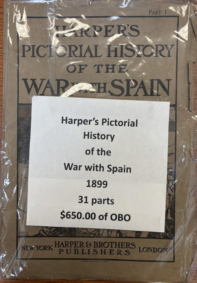 Harper's Pictorial History of the War with Spain, 1899 oversize publication with text, drawings & maps, some in color; Parts 1-32 lacks only #2, several w/ incorrect printed issue number & corrected by red handstamp and/or pencil; expected wear to paper covers, most pgs appear VF (Image)