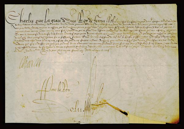 Very Rare 1569 King Charles VII of France Signed French War of Religions Document, This 1569 document was written as a decree by Charles VIII of France during the French Wars of Religion between the Catholics and Protestants of the nation and addresses financial matters of the nation. Additionally, there is reference to the redemption of the ransom of Clemont d'Amboise, suggesting payment for the release of a prisoner. The text mentioned "la nouvelle pretenden Religion Rifftine," potentially a reference to the Protestant Reformation. This document is a unique find from the time with fascinating contents and a very bold and rare signature. This item has been pre-certified from scans by leading authority and authenticator John Reznikoff at johnreznikoff.com. For a full certificate at a special discounted rate which requires sending the item in, contact john@universityarchives.com. (Image)