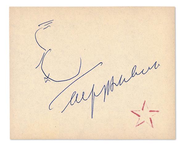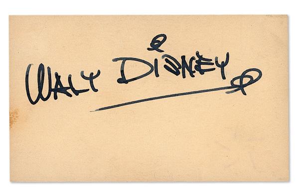 Walt Disney Autograph On A Signature Card, nice signature. Items have been marked with a "Red Star" in acid free ink as it originated from Michael Joseph Luzzi Collection and most were curated by George Pennacchio (Los Angeles entertainment reporter; see https://lapressclub.org/about/board/george-pennacchio/) as obtained directly from the celebrity. (Image)