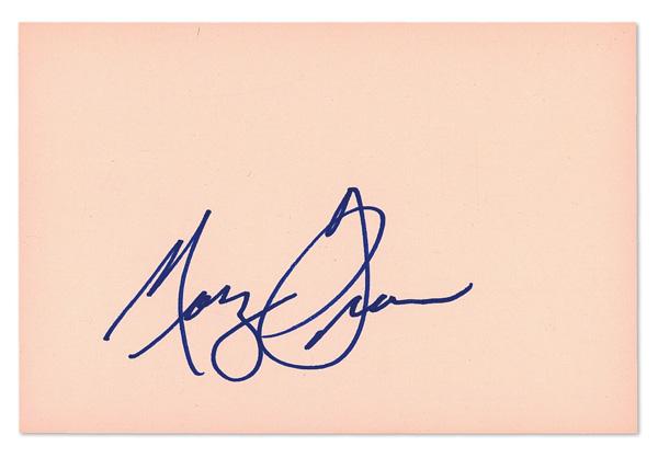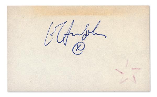 Elton John Autograph On A Signature Card, bold autograph. Items have been marked with a "Red Star" in acid free ink as it originated from Michael Joseph Luzzi Collection and most were curated by George Pennacchio (Los Angeles entertainment reporter; see https://lapressclub.org/about/board/george-pennacchio/) as obtained directly from the celebrity. (Image)