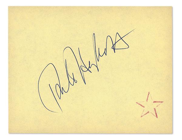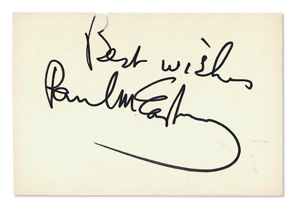 Paul McCartney Autograph On A Signature Card, "Best Wishes Paul McCartney". Items have been marked with a "Red Star" in acid free ink as it originated from Michael Joseph Luzzi Collection and most were curated by George Pennacchio (Los Angeles entertainment reporter; see https://lapressclub.org/about/board/george-pennacchio/) as obtained directly from the celebrity. (Image)