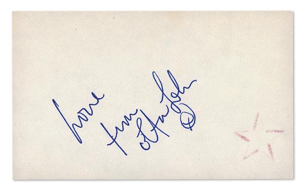 Elton John Autograph On A Signature Card, "Love From Elton John". Items have been marked with a "Red Star" in acid free ink as it originated from Michael Joseph Luzzi Collection and most were curated by George Pennacchio (Los Angeles entertainment reporter; see https://lapressclub.org/about/board/george-pennacchio/) as obtained directly from the celebrity. (Image)