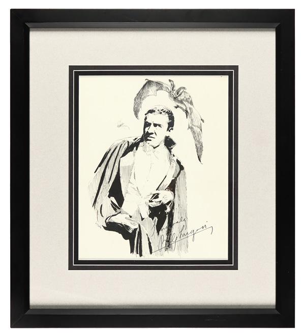 Framed Count Dracula Portait Autographed By Bela Lugosi, vintage 8x10 photo of an artist's "pen and ink style' sketch of Lugosi as Count Dracula; signed: "Sincerely Bela Lugosi"; any signd image of Lugosi in his iconic role is extremely rare. This item has been pre-certified from scans by leading authority and authenticator John Reznikoff at johnreznikoff.com. For a full certificate at a special discounted rate which requires sending the item in, contact john@universityarchives.com. Shipping charges apply - weight 4.2 lbs. (Image)