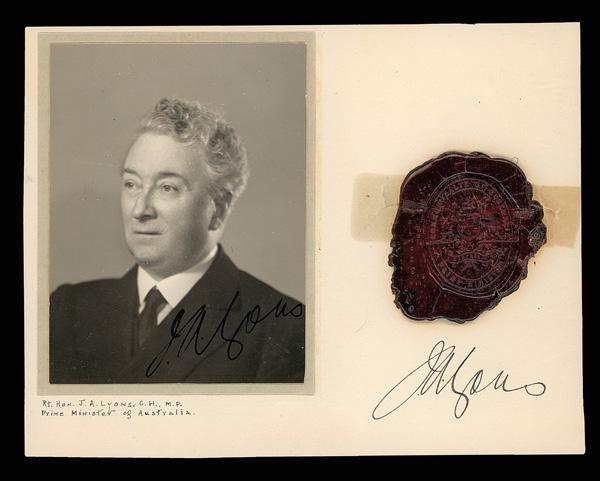 Ca. 1938 Signed Photo of Prime Minister Joseph A. Lyons of Australia and Signed Photo of Premier Raymond L. Butler, This collection of two circa 1938 signed photos of Raymond J. Butler, Premier of Australia and Australian Prime Minister Joseph A. Lyons is a desirable pairing of memorabilia from two Australian powerhouses of politicians of the era. They are in very well-preserve condition with no faults or issues. These items have not been authenticated by a third party. They are being sold as-is as a group and are not subject to return. We make every attempt to offer original signatures but in group lots we encourage the buyer to use their judgment. (Image)