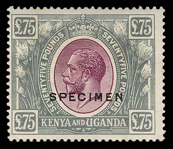 KENYA, UGANDA, TANGANIKA: 1925, £75 purple & gray, "gum toned " which is typical, fresh colors, still very fine. Brandon Cert. (2024). (SG 104s £4,750 ) Sale and Lot Updates SG £4,750 (Image)