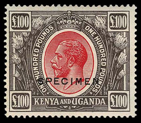 KENYA, UGANDA, TANGANIKA: 1925, £100 red & black, very l.h., "gum toned" which is typical, fresh colors, still very fine. Brandon Cert. (2024). (SG 105s £6,000 ) Sale and Lot Updates SG £6,000 (Image)