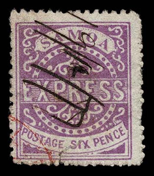 SAMOA: 1879 5 sh emerald green Type III, Corner Copy, o.g. small part hinge remnant, very fine. (Scott 8 $1,875 ) Sale and Lot Updates Scott $1,875 (Image)