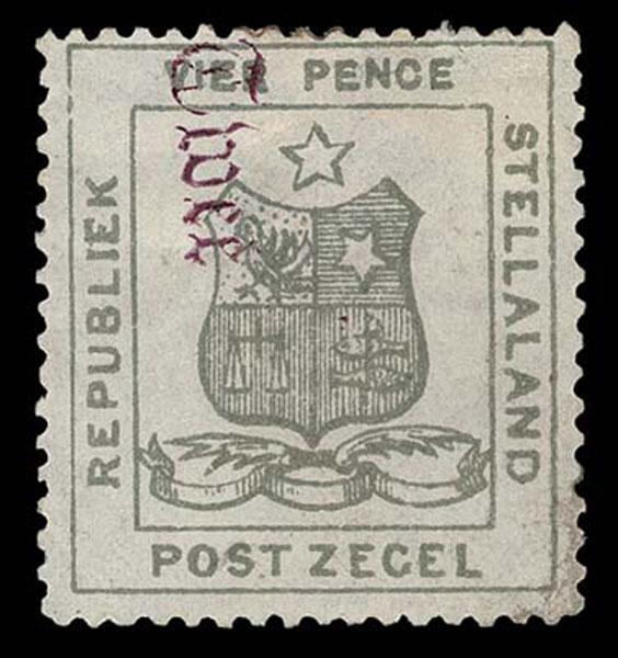 STELLALAND: BECHUANALAND: 1885 "Twei" (2d) on 4d olive green, part o.g. "minor faults" which seems to be limited to a faint corner crease and some off set on the gum , fine and far better than most. Brandon Cert. (2025). (SG 6 £3,500) Scott 6 $3,500 in italics) Sale and Lot Updates Scott $3,500 (Image)