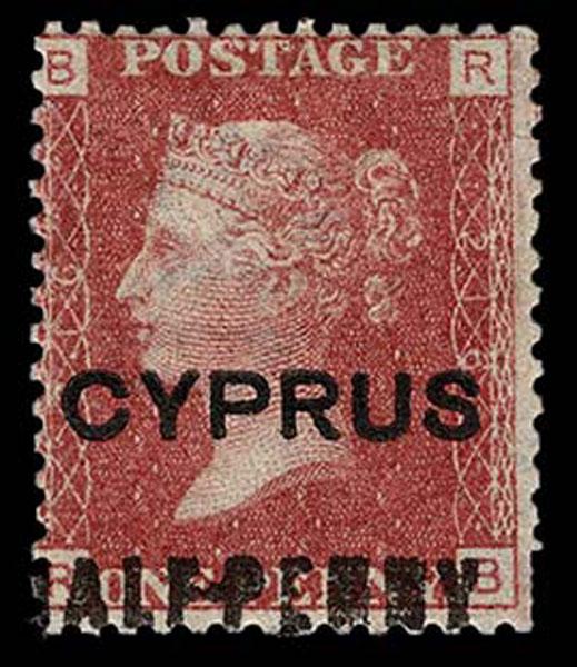 CYPRUS: 1881; 1/2d on 1d red Plate 216, overprint. 16 1/2mm, part o.g., fine. (Scott 9 $400 ) Sale and Lot Updates Scott $400 (Image)