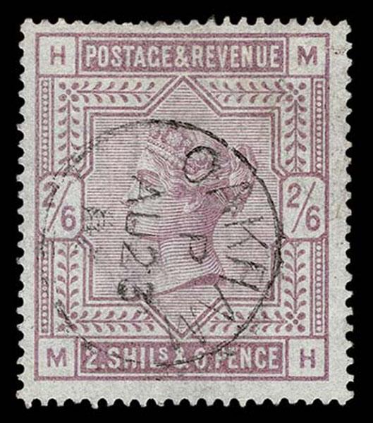 GREAT BRITAIN: 1883 2sh 6p lilac, bluish paper, light OAKHAM AU23 82 c.d.s. , almost very fine. (SG 175 £1,500) (Scott 96a $1,750 ) Sale and Lot Updates Scott $1,750 (Image)