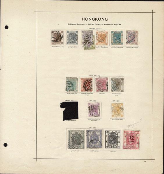 BRITISH ASIA: 1860's to 1910; Hong Kong, Labuan, North Borneo (some Sarawak). Collection of several hundred, mostly used stamps on old-time Schaubek album pages, some complete sets, overprints, surcharges, some stuck down by old-time hinges (should not affect used stamps) condition mixed, many useful items.